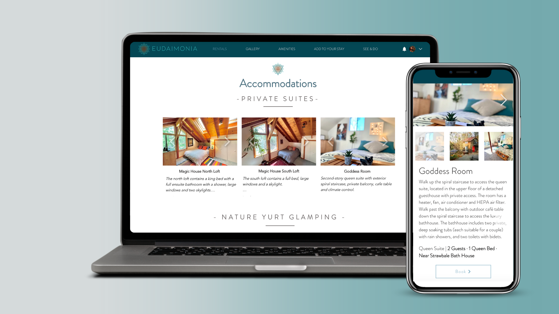 Since launching the new website, Eudaimonia has experienced a significant boost in it’s growing retreat business. With a clean design that speaks to the sanctuary’s healing energy, Eudaimonia’s retreat sales have increased by 75%. Additionally, the website’s ability to promote wellness and romance packages has generated consistent monthly revenue, allowing the property to attract a broader clientele looking for an enriching and rejuvenating escape from the city.